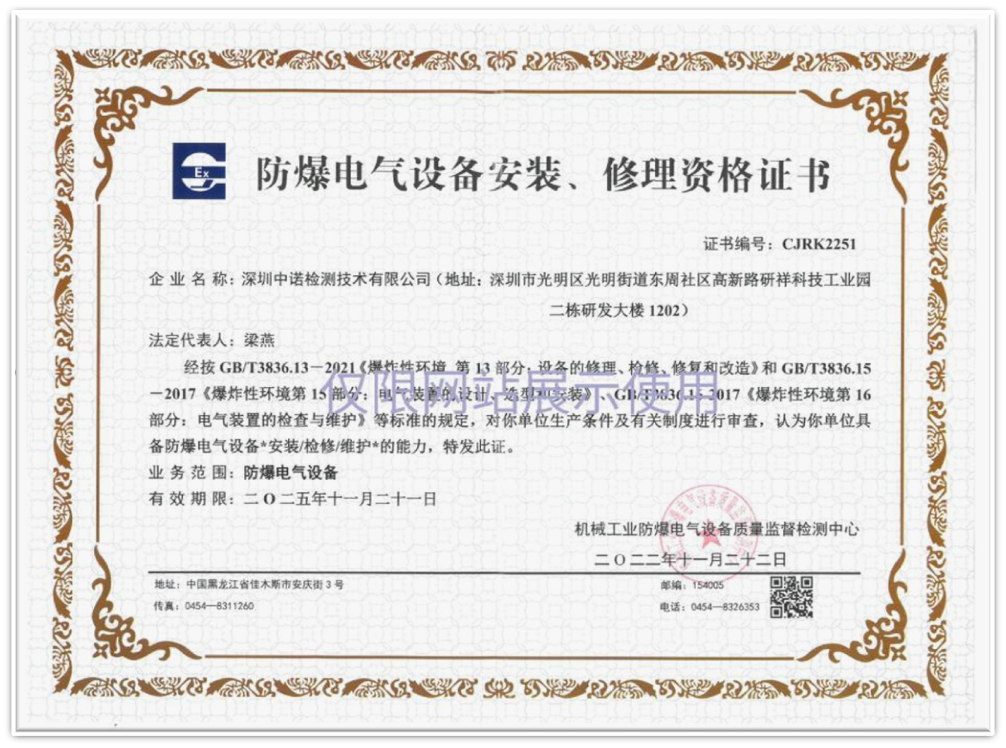 防爆安裝資質(zhì)證書查詢